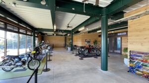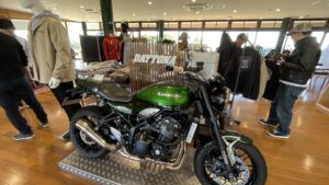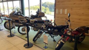 一階がバイクの展示ルームになっており、二階は物販や飲食のできるスペースとなっていました。