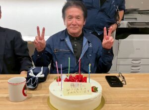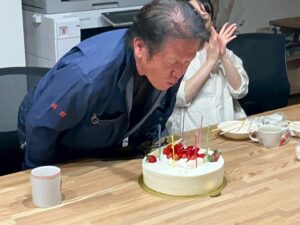先日、工務課の藤村さんの誕生日兼定年祝いでパーティーをしました。