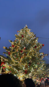 クリスマスマーケットでは、たくさん食べ物が出てたのですが、どれもすごい並んでいたので食べ物は食べずに大きなクリスマスツリーの写真を撮りに行きました。