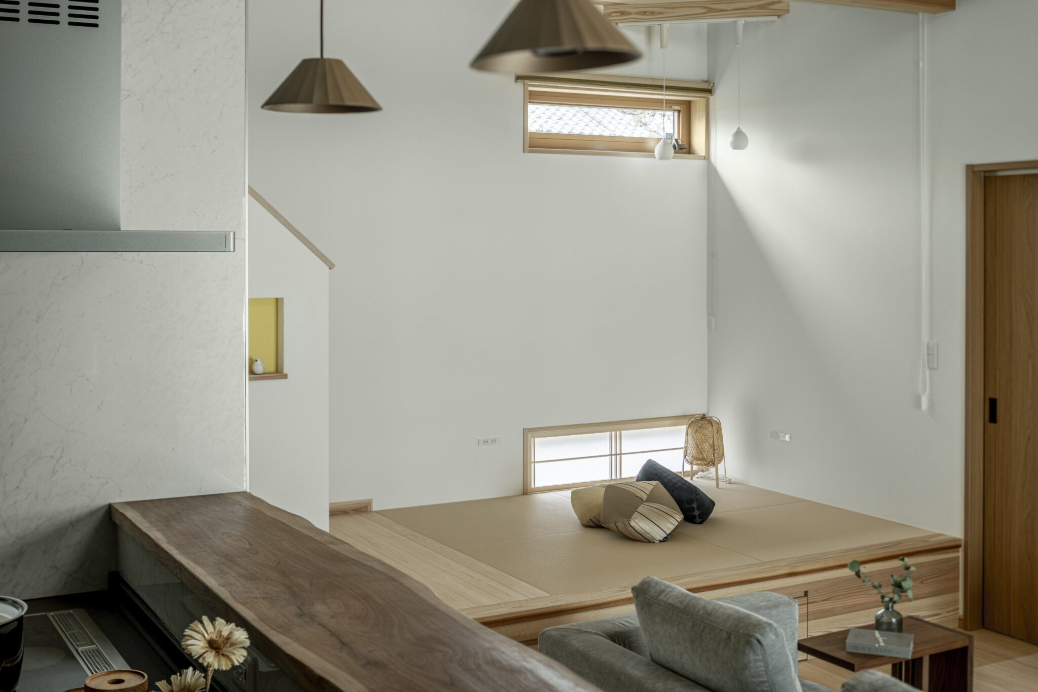 小椋:お子さんの歳がいくつかによっても、考え方は変わると思います。例えば、これから生まれる、生まれて間もないというような場合、這い這いする子どもや夜泣きする子ども、おむつを替えたりお風呂に入れたり、目先の子育ては想像しやすいので、安全にお遊ばせたりお昼寝させられたりできる和スペースをつくりたいというリクエストがありますが、子どもが親離れしたその先の暮らし方は、なかなかイメージできないので、お客様からの具体的なリクエストは少ないものです。