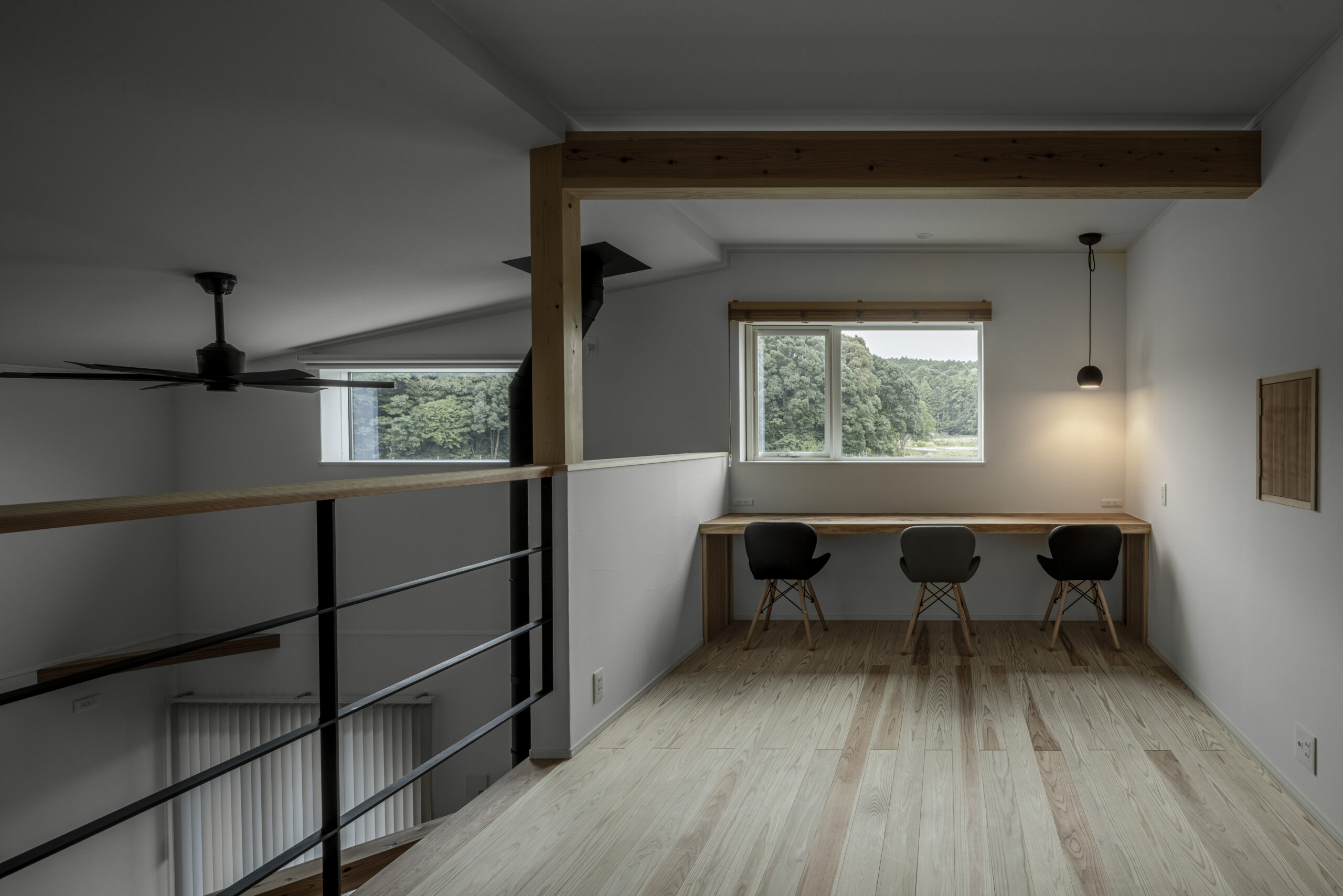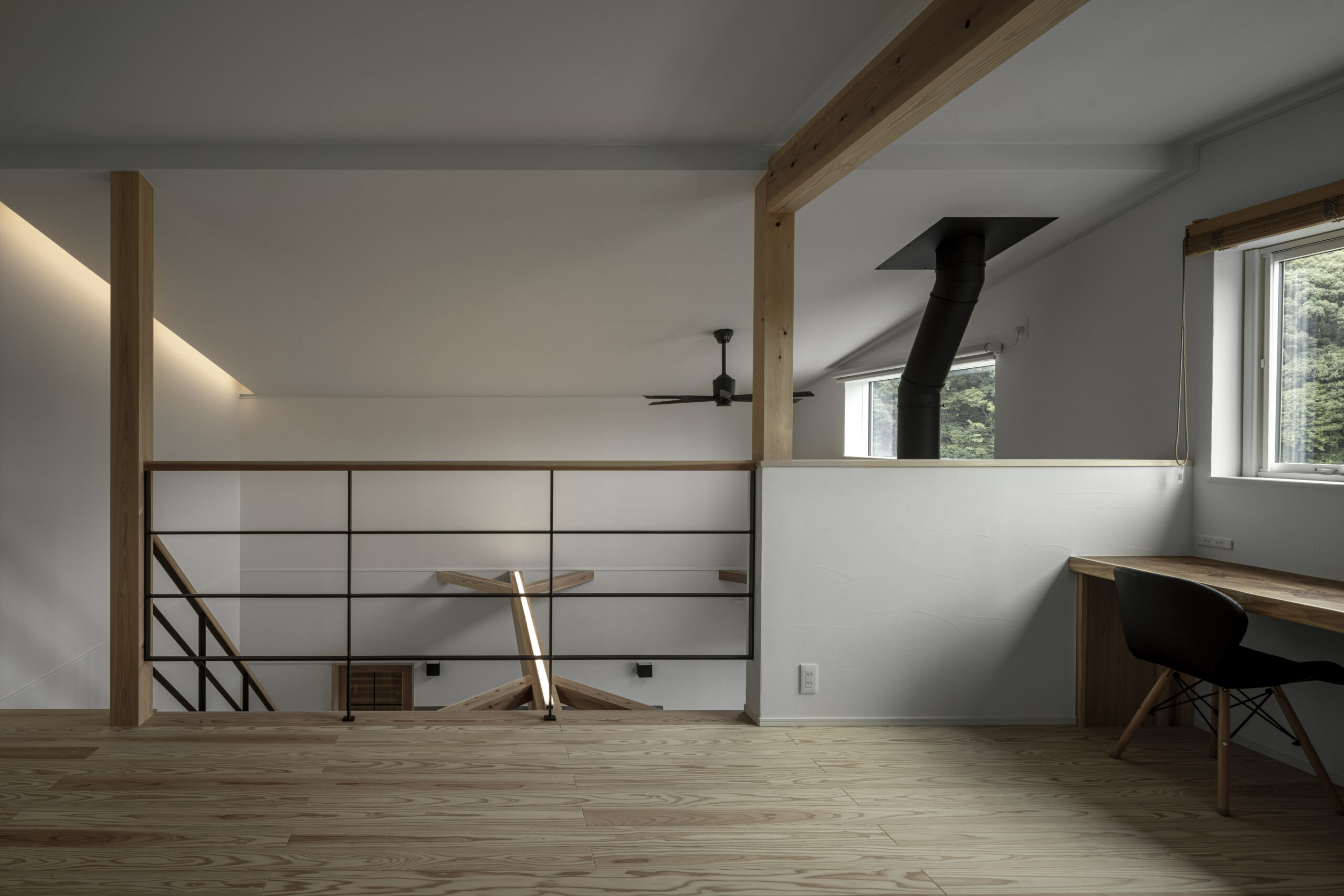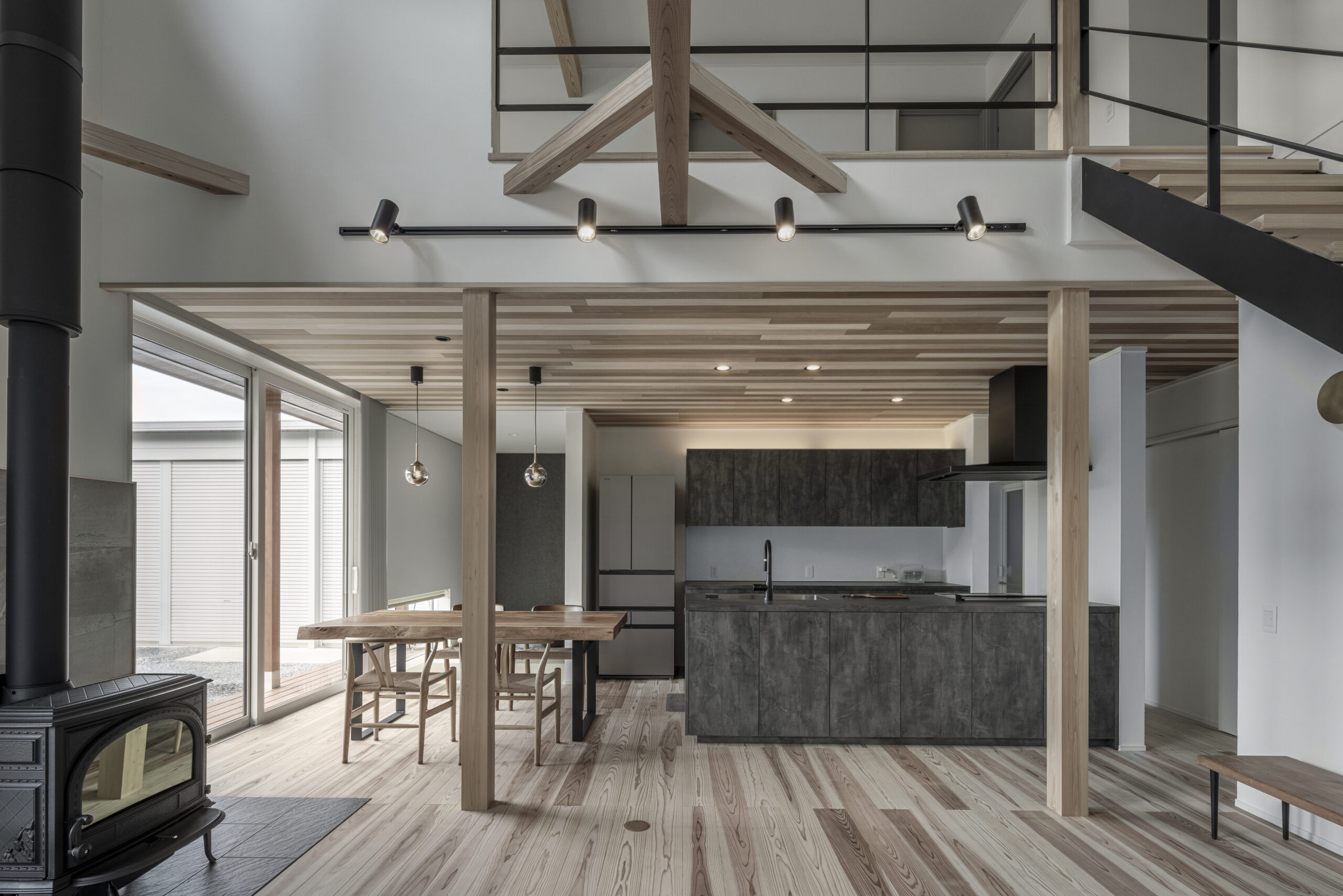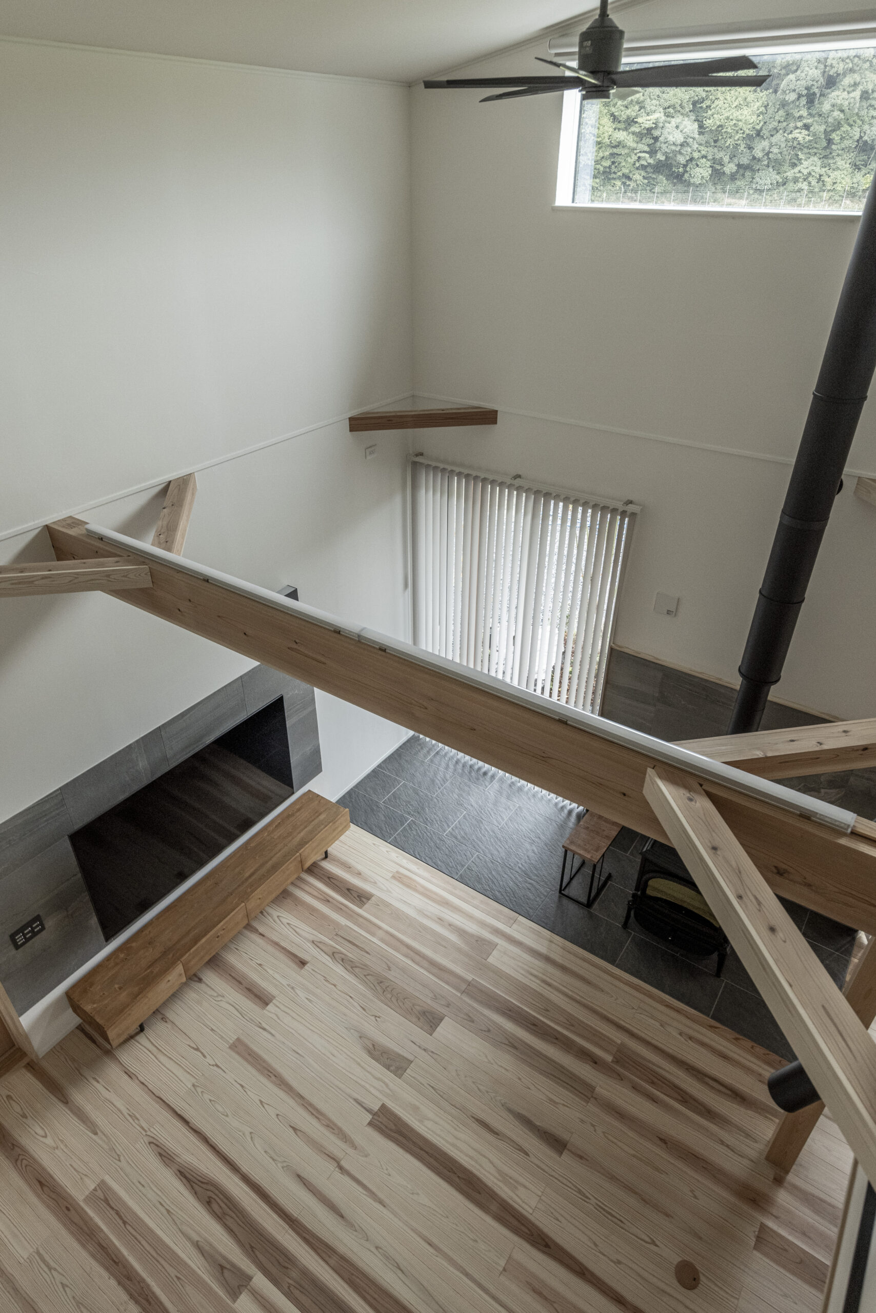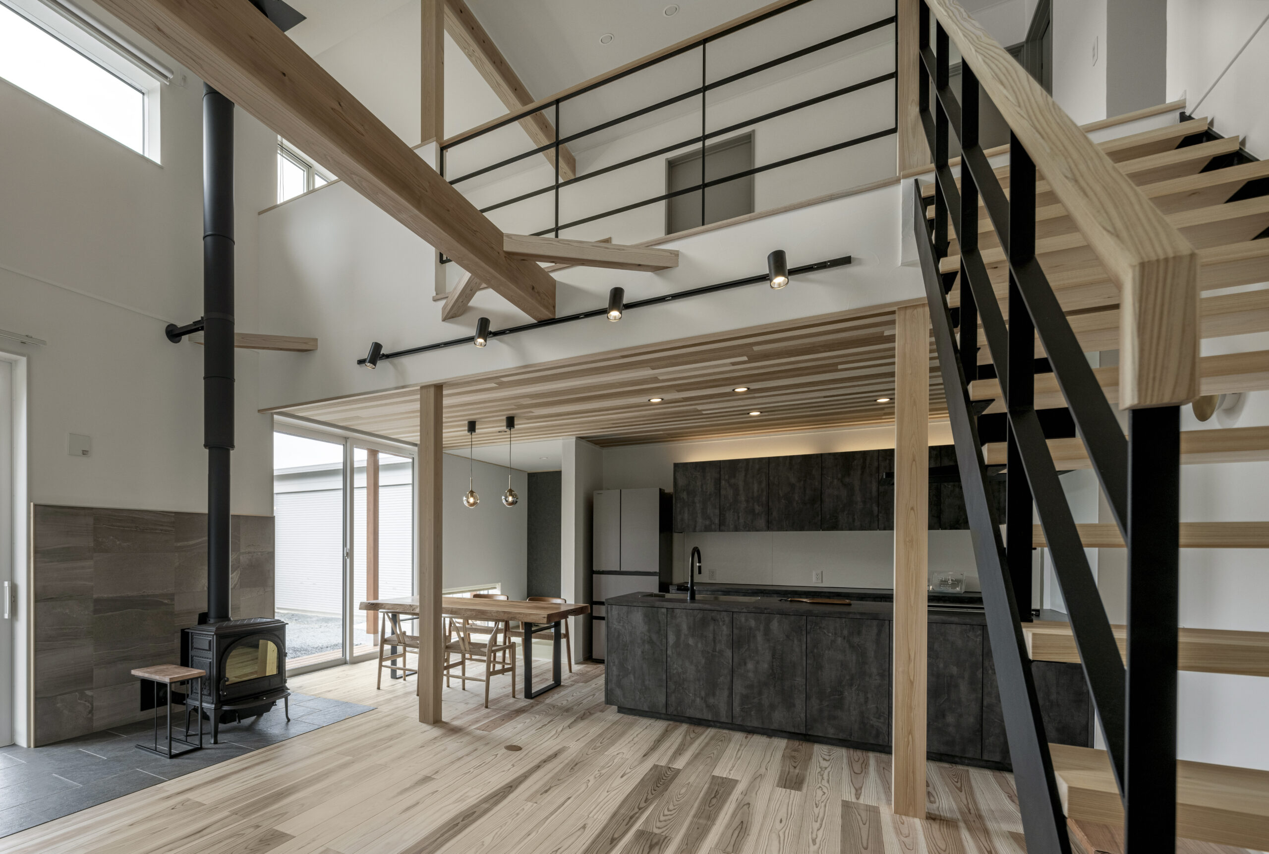 吹き抜けを介して上下階がつながり、どこにいても“家族の声や光が届く”温かな住まい。