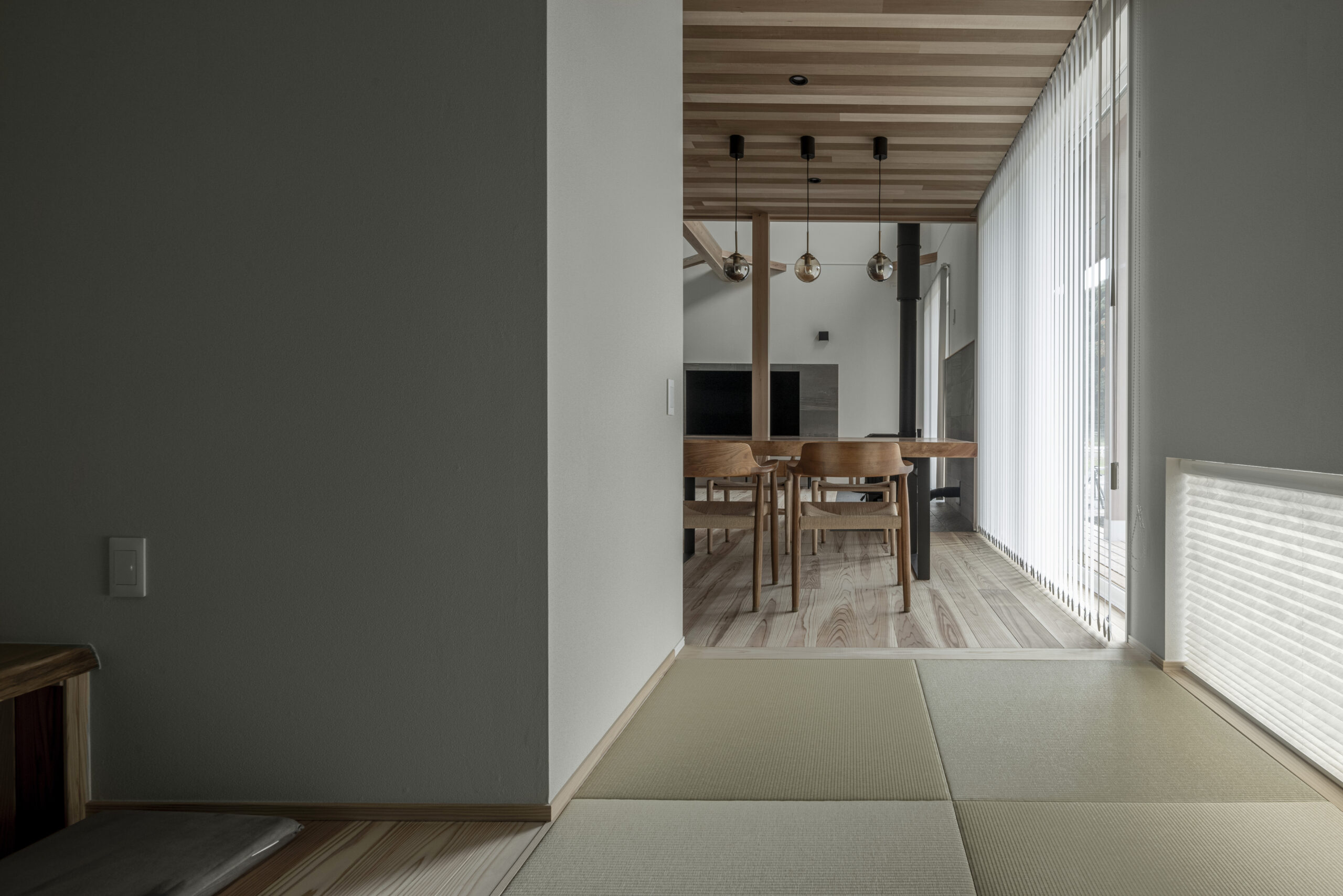 ダイニングの奥には畳スペースを設け、 家族の気配を感じながらも、それぞれの時間を楽しめる間取りです。