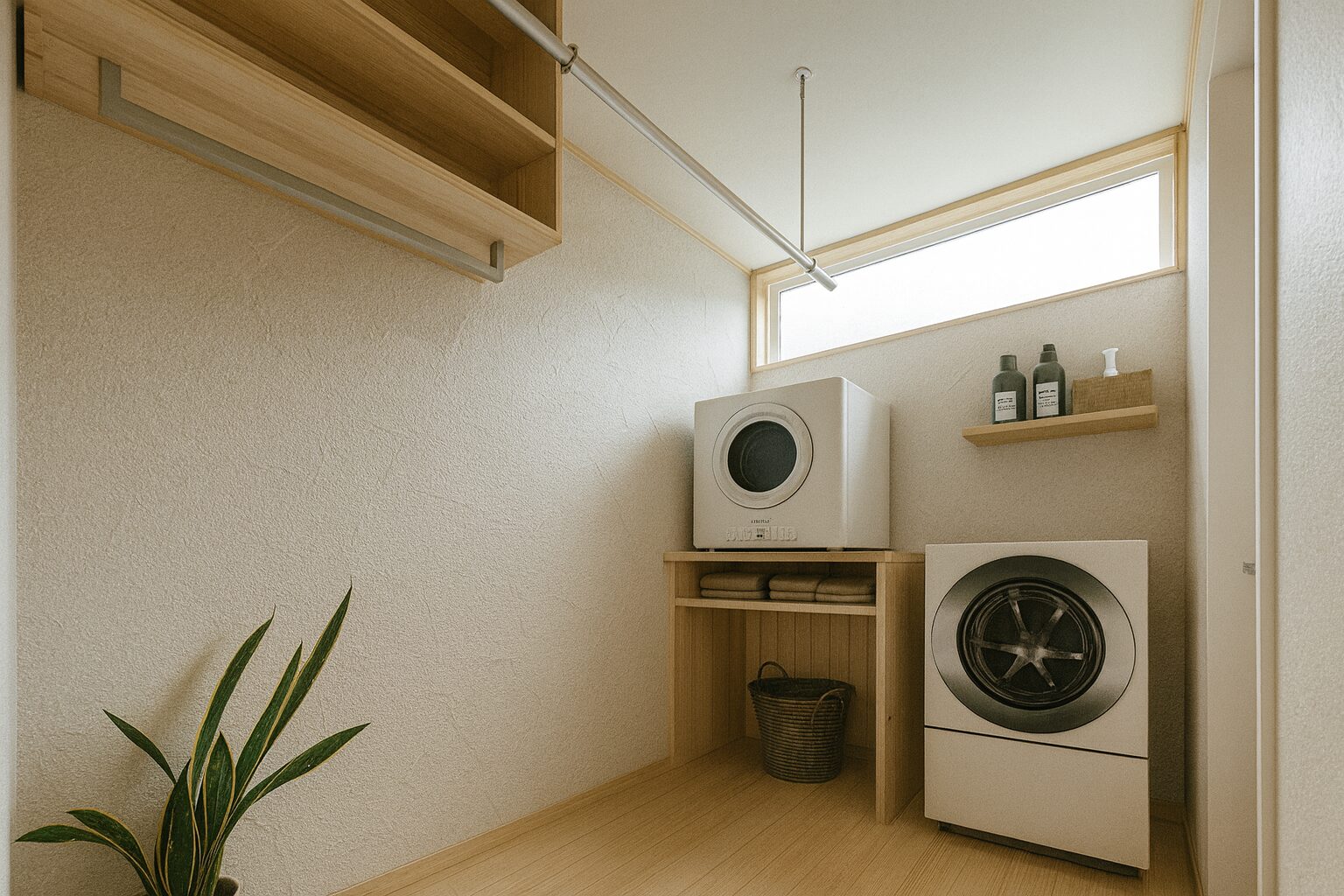 「時短家事ラク動線を考えた配置にしたい」というご要望から、脱ぐ・洗う・干す・しまうが一直線にできる、共働きや子育て世代にも嬉しい家事ラク動線にしました。