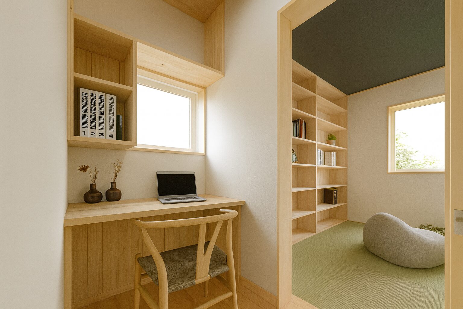 また、書斎コーナーも隣に備え、趣味や在宅ワークなど、自分時間を大切にできるスペースになっています。