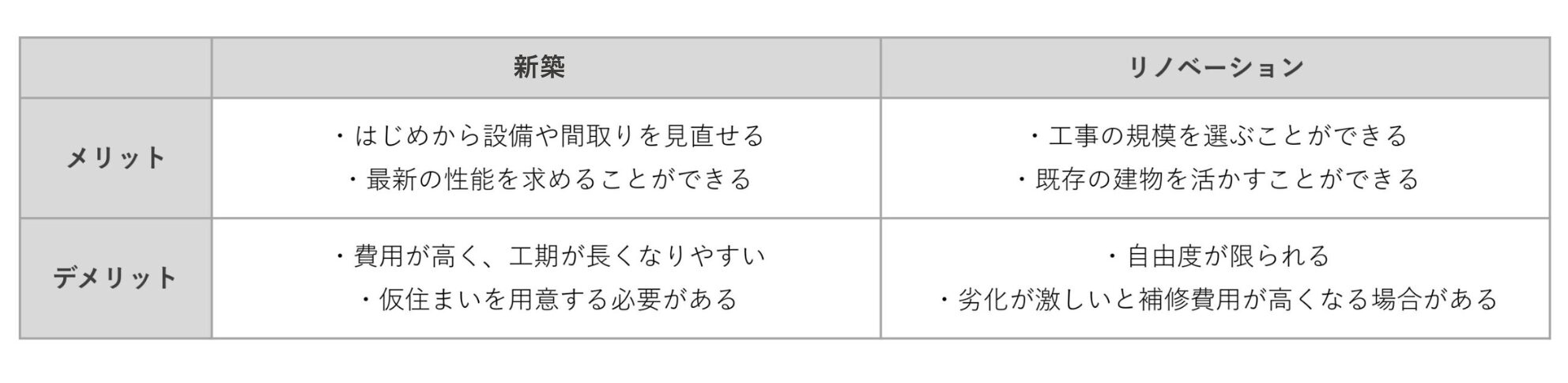 新築もリノベーションも、それぞれにメリット・デメリットがあります。